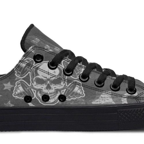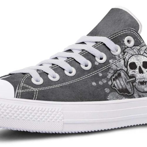 Elevate your fitness style with Barbell Pattern Black Low-Top Sneakers. Unique weightlifting-inspired design for gym enthusiasts who love casual comfort.