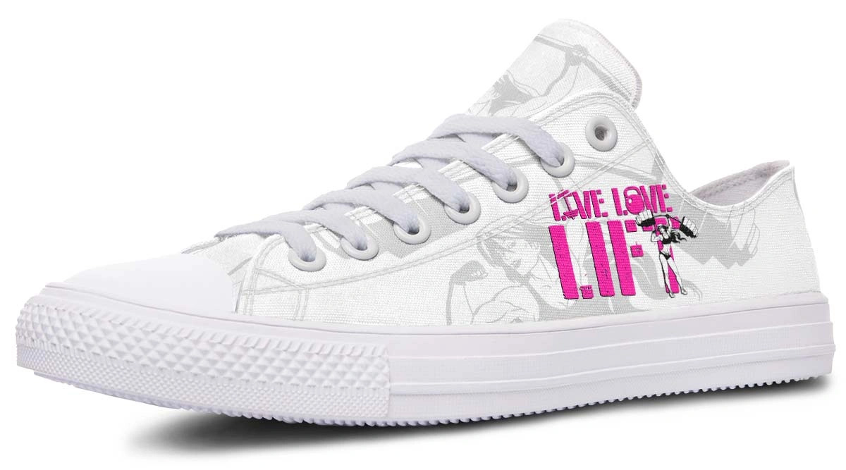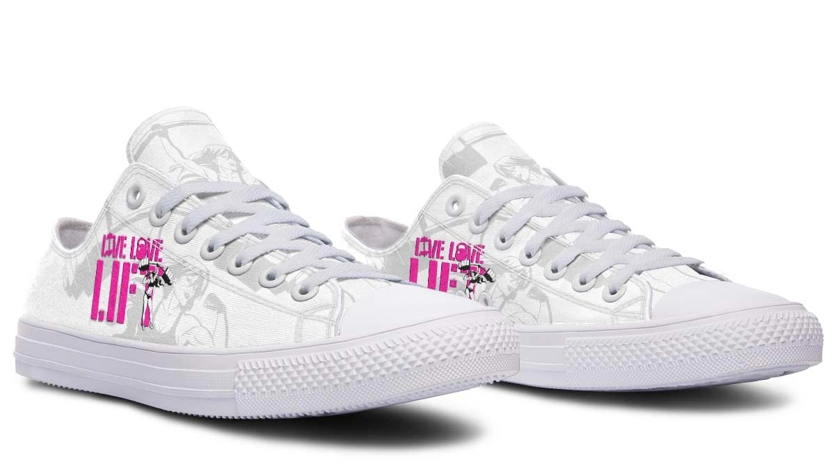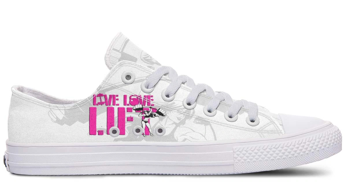 Elevate your daily rotation with the Live Love Lift White Lowtop Sneakers. Designed for the modern fitness enthusiast, these sleek white sneakers offer a clean, minimalist look that pairs effortlessly with everything from gym leggings to casual jeans. Whether you are hitting the weights or meeting friends, the breathable canvas and supportive cushioned insoles provide the comfort you need to keep moving. Lightweight and stylish, these shoes celebrate the fitness lifestyle with a subtle Live Love Lift message. Experience the perfect blend of fashion-forward appeal and everyday functionality with these fresh, modern sneakers.