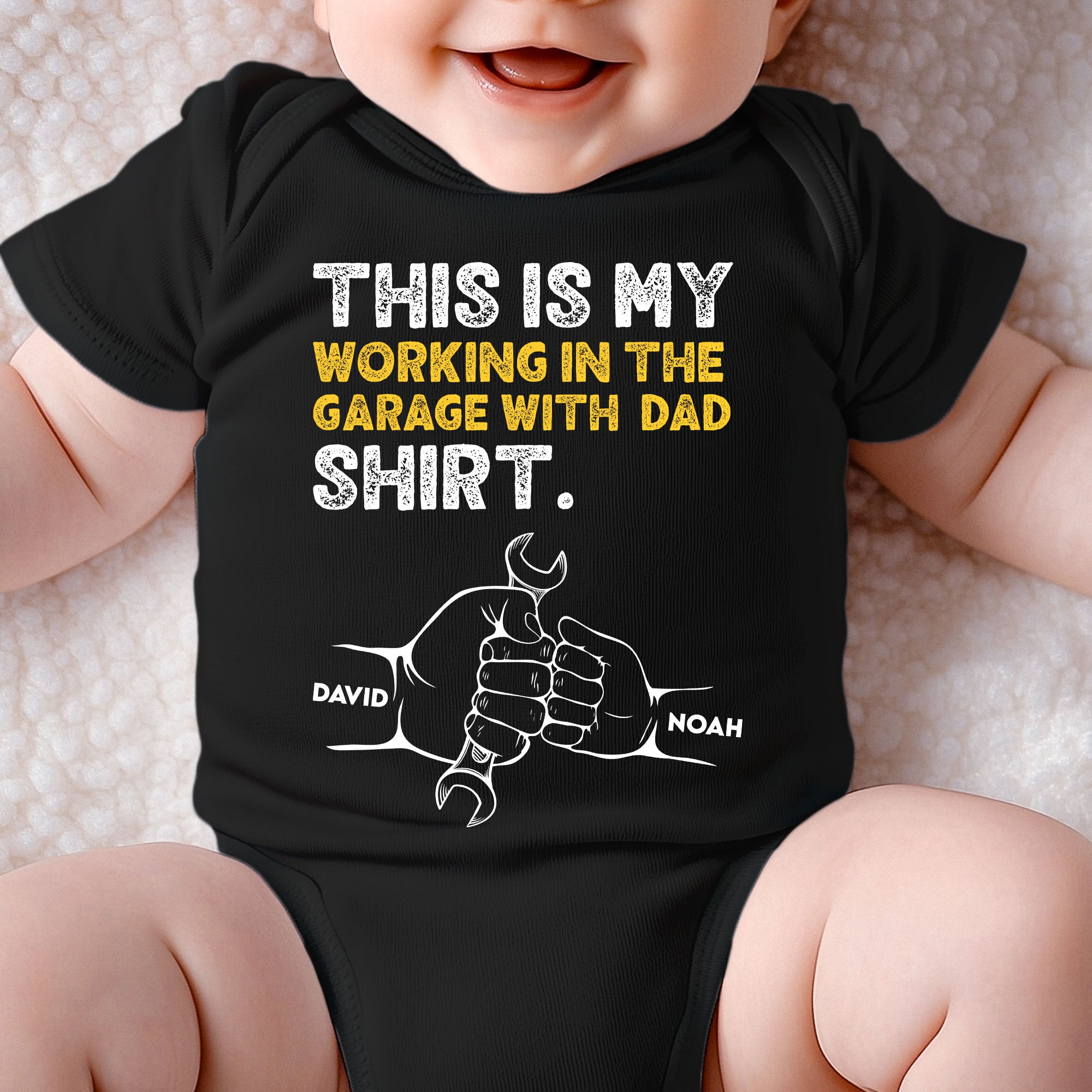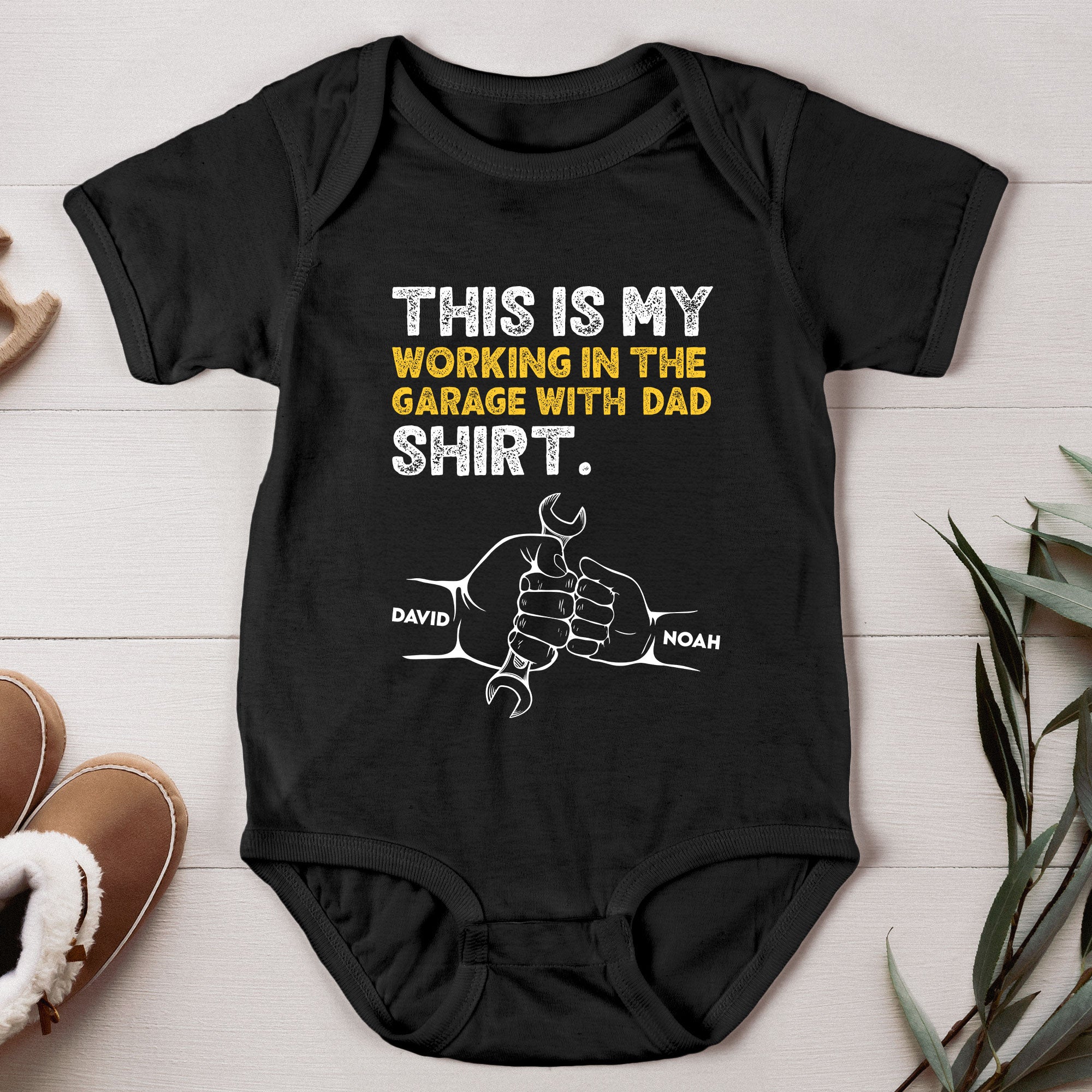 Discover a product that cherishes father-child bonding and promotes shared interests. This unique and sentimental Matching Shirt And Baby Bodysuit set is an endearing way to celebrate the special bond between you and your little one. With a playfully crafted message that highlights shared moments in the garage, it is a symbol of your similar interests and a delightful token of your relationship. This impressive duo is perfect for Father’s Day, birthdays, Christmas, anniversaries, or any occasion, as it depicts the shared hobby time in the most adorable manner.